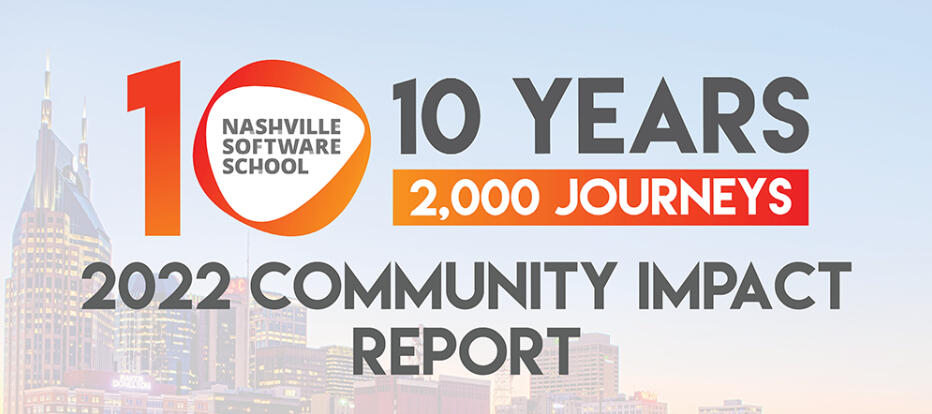 Every year since I started working for Nashville Software School, I would design the Community Impact Report which was used to discuss the school's mission and impact with high-dollar donors throughout the year. Click the link above to see the 2022 10 Year Anniversary Community Impact Report I designed to match the rest of the NSS 10 Year Anniversary branding I created.